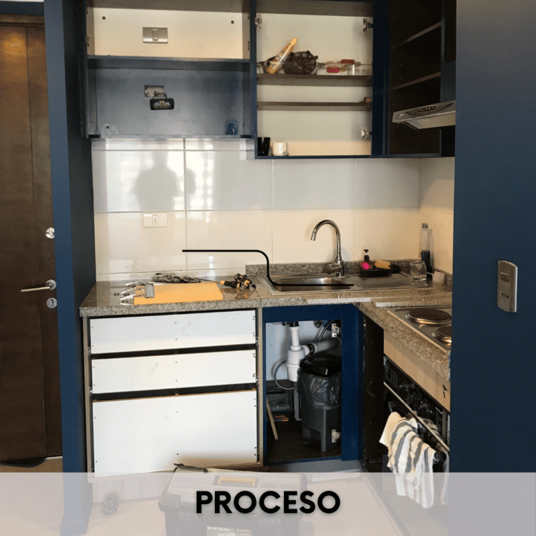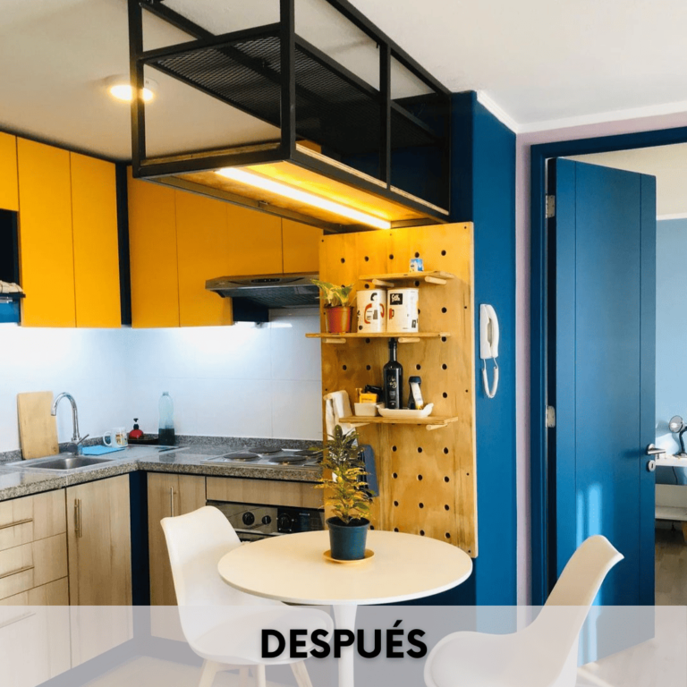Revitalizamos un departamento en Santiago Centro, transformando una cocina apagada en un espacio lleno de vida y energía.